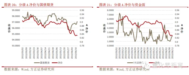 方正金工之前发布的专题《她的美还未曾被发现——分级基金A专题报告》对分级A的期权价值做了深入的讨论,研究发现折溢价、母基金波动率、上折条款、下折条款、约定利率、母基金下折距离、AB比和无风险利率等因素共同决定于分级A的期权价值。