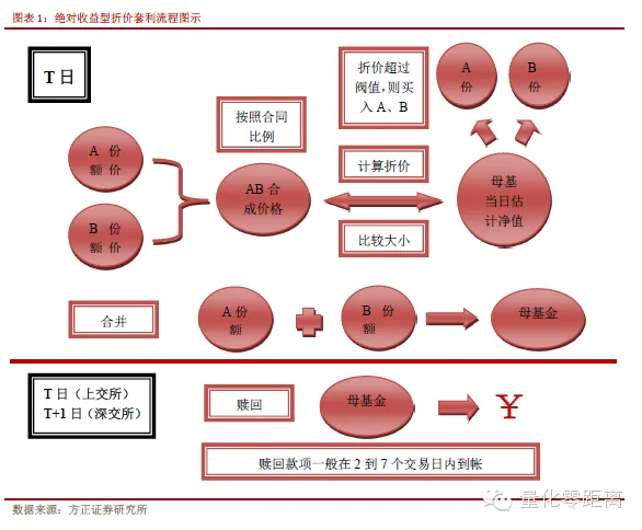 分级基金折价套利的流程与溢价套利相反,先买入后再合并赎回。相较溢价套利,折价套利的最大不同之处在于买入至赎回的时间间隔较短,赎回时资金虽未到帐,但套利的损益业已锁定。