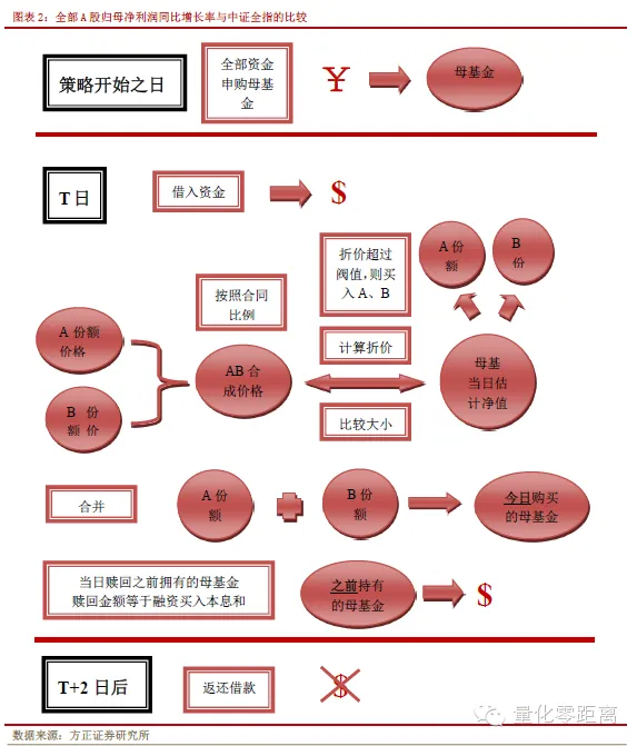 融资:T日若折价超过阈值,则于T日收盘前融资买入A、B份额。在T日收盘前,投资者下达合并指令,将购买获得的A、B份额合并为母基金,并赎回自己手中持有的母基金。投资者需确保赎回后所得的资金金额能够覆盖融资款项的本息之和;